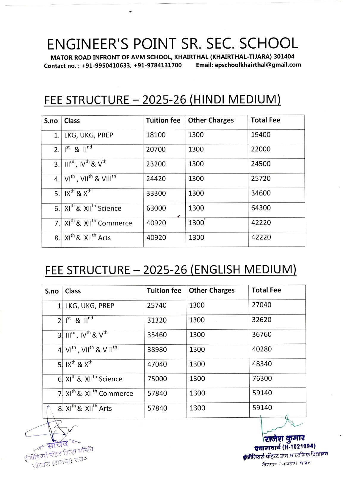 | 1 | Name of the School | ENGINEER'S POINT SR SEC SCHOOL, KHAIRTHAL |